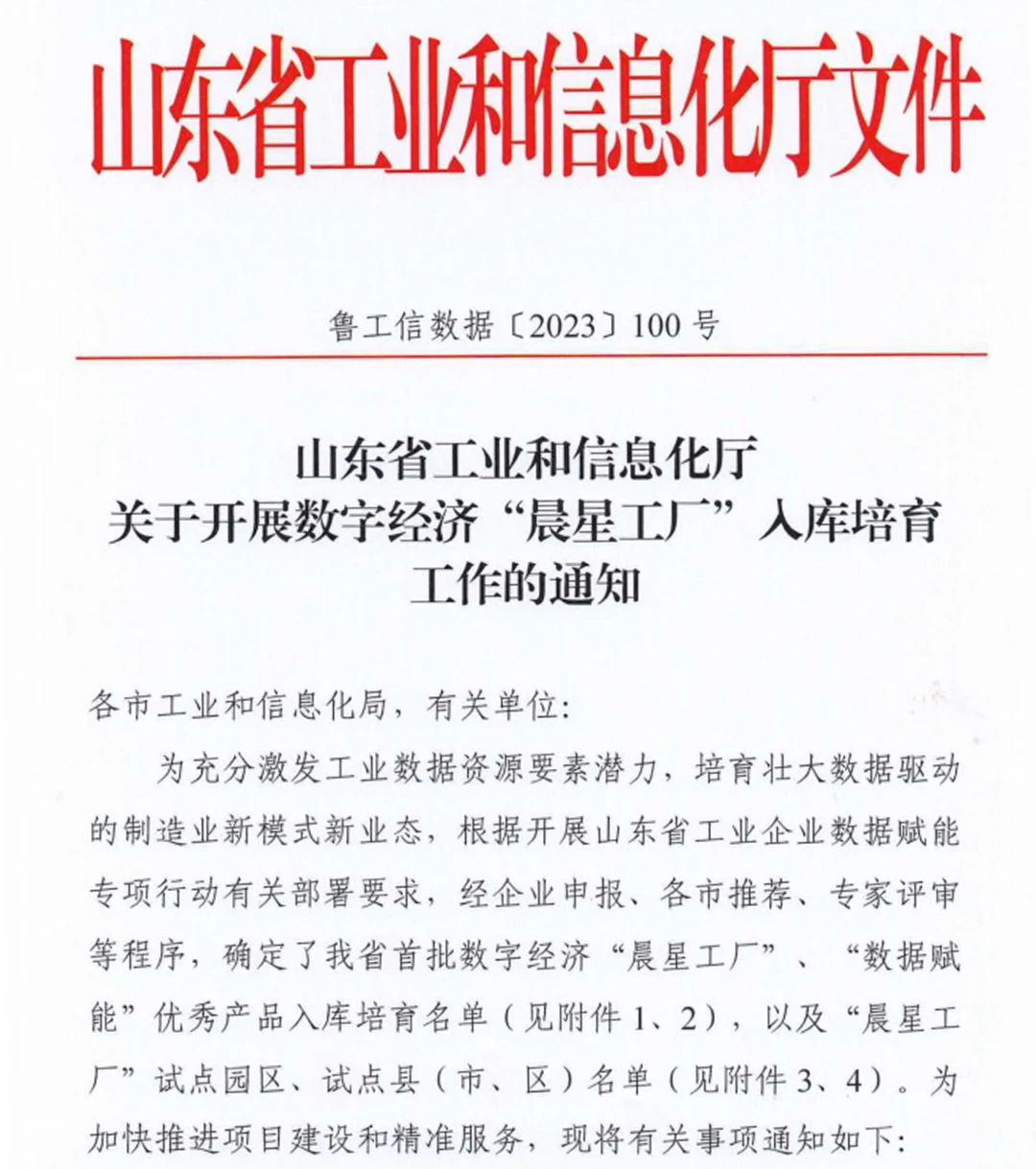 日前,山東省工業(yè)和信息化廳公布了首批數(shù)字經(jīng)濟“晨星工廠”入庫培育名單。益凱新材料有限公司成功入選首批省級“晨星工廠”入庫培育名單。