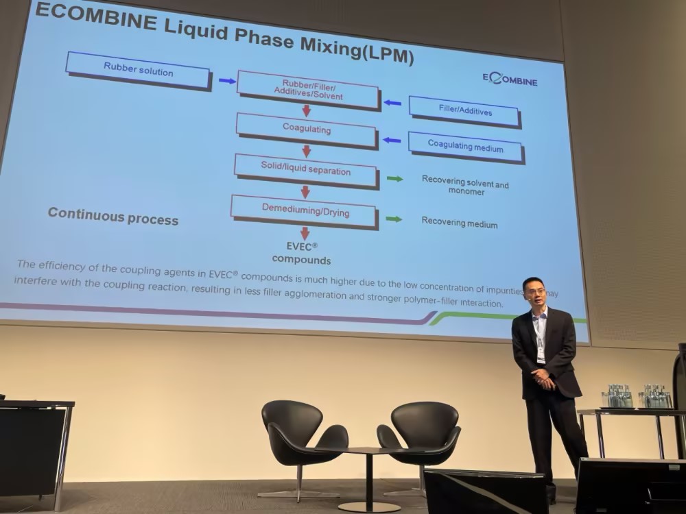值得一提的是,益凱產(chǎn)品規(guī)劃部部長巴孟晨在展會上發(fā)表了題為Comparison of Different Liquid Phase Mixing Approaches的精彩演講。巴部長在演講中系統(tǒng)闡述了三種主要的煉膠方法,并對其性能進行了詳細對比。他指出,一步法液相混煉技術(shù)在拉伸強度和斷裂拉伸率方面表現(xiàn)出明顯優(yōu)勢,從而實現(xiàn)更高效、更環(huán)保的生產(chǎn)工藝。該演講反響熱烈,現(xiàn)場眾多觀眾爭相提問,益凱在橡膠行業(yè)的國際知名度和影響力也得到了進一步彰顯。