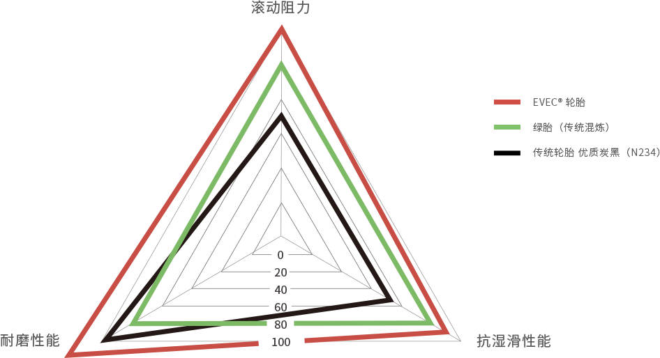 化學(xué)煉膠工藝與干法混煉技術(shù)相比,可進(jìn)一步提高輪胎中白炭黑用量,且白炭黑生產(chǎn)能耗僅為炭黑生產(chǎn)能耗的20%左右。由于化學(xué)煉膠工藝保證了白炭黑的使用效果,節(jié)省了化石原料的消耗,可大大節(jié)約原材料本身的能耗,從源頭上實現(xiàn)節(jié)能減排。